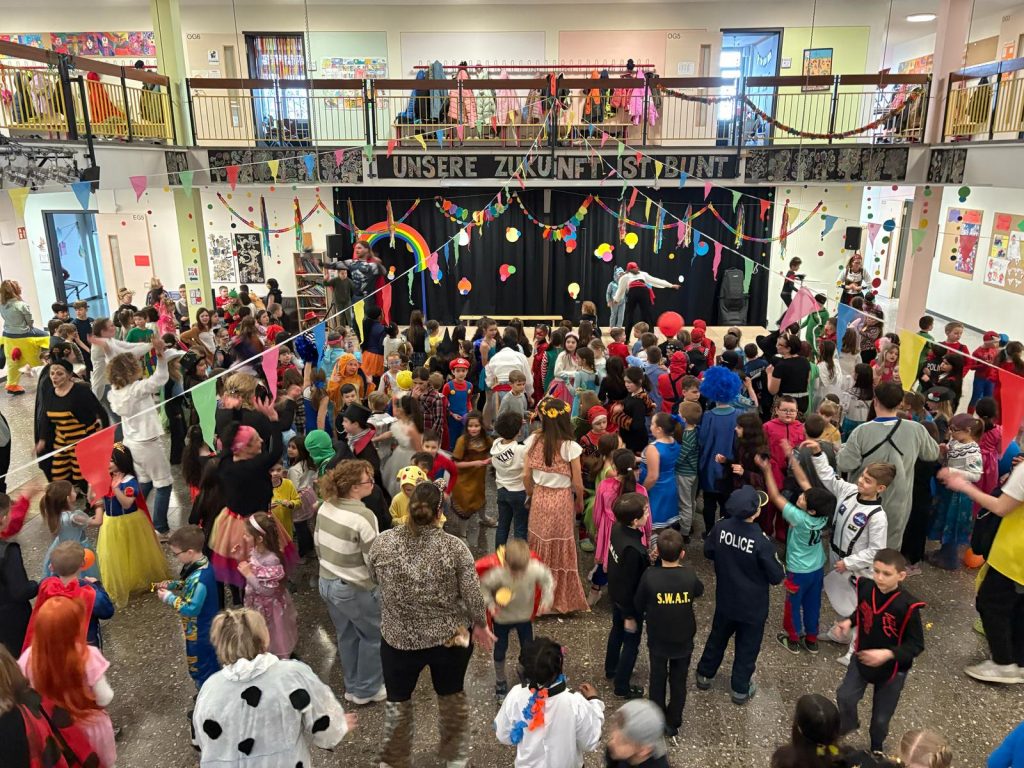 Große Freude und ausgelassene Stimmung herrschte am Faschings-Freitag in der Silcherschule, als pünktlich um 11Uhr fröhliche Faschingsmusik erklang und alle Kinder aus ihren Klassenzimmern von zur traditionellen Polonaise abgeholt wurden. In der geschmückten Aula erwartete sie ein abwechslungsreiches Programm, durch das unsere engagierten Referendare Herr Rücker und Frau Reinecker mit viel Schwung führten.