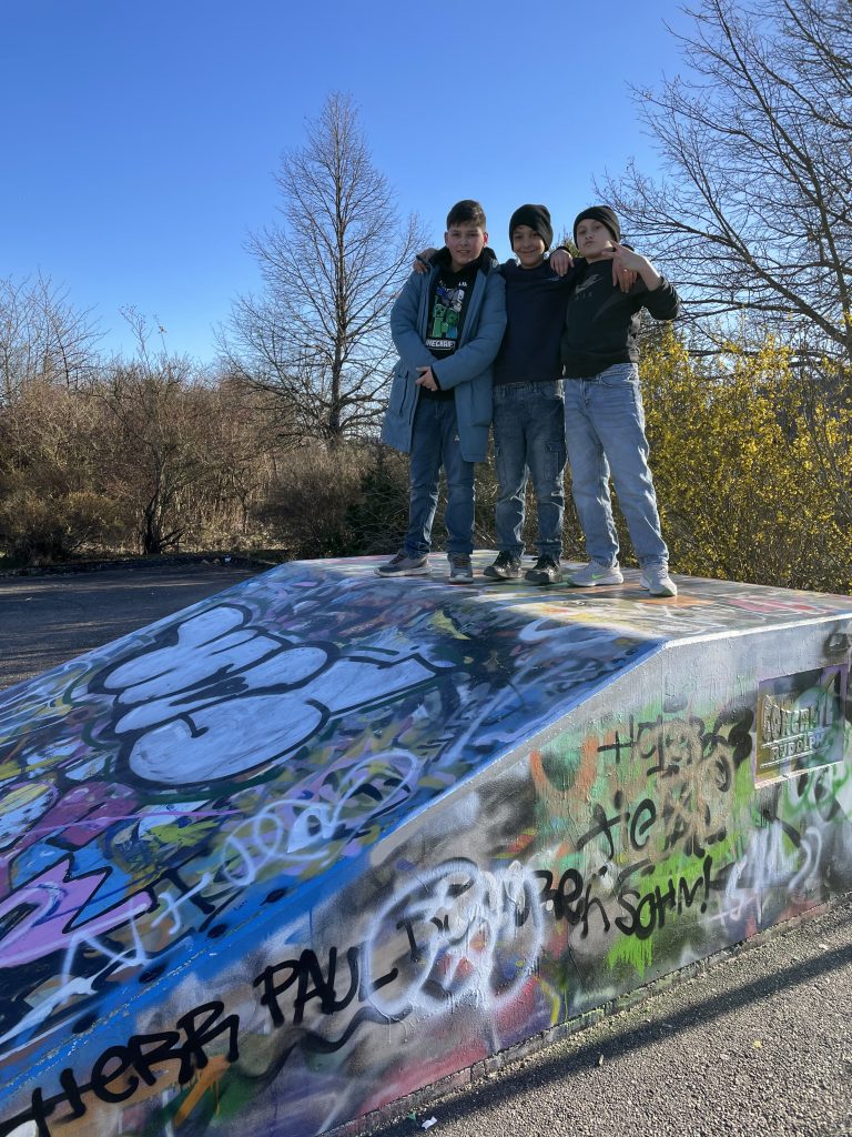 Im Anschluss beantworteten uns die Inklusionsschüler der MES unsere Fragen über die Art und Anzahl der Schulfächer, die Schulzeiten, das Mittagessen in der Mensa und die Arbeitsgemeinschaften am Nachmittag. Besonders staunten die Silcherschüler über die Bogenschießen- und Hühner-AG. Abschließend wurden wir durch das bunte Schulhaus und über den riesigen Schulhof mit Basketballplatz, Fußballfeld, Tischtennisplatten und einem Skaterpark geführt.