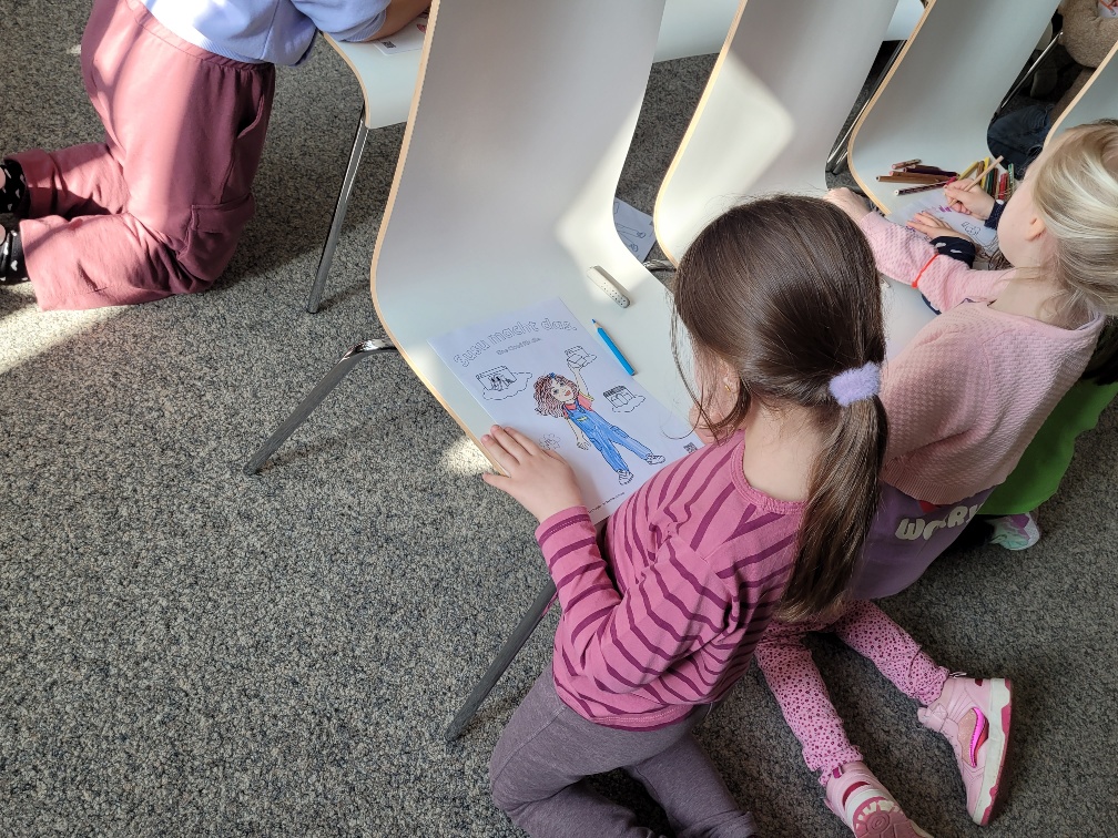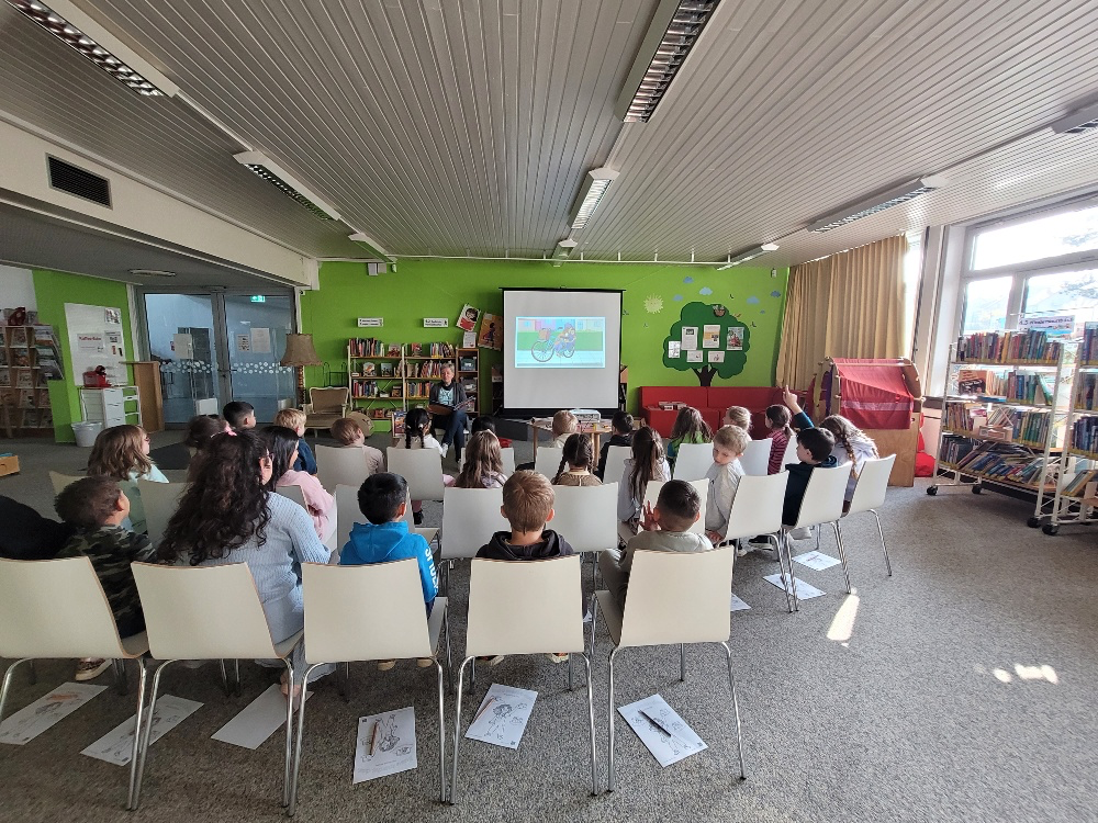 Katja Wengler, Professorin für Wirtschaftsinformatik und Data Science und LEGO League Coach in der Bücherei, war kürzlich zu Gast in der Stadtbücherei und stellte dort das Kinderbuch „Susu macht das. Eine Cloud für alle“ vor. Zu der drei Veranstaltungen war jeweils eine ersten Klasse der Silcherschule eingeladen. In einer lebendigen Lesung bezog Katja Wengler die Kinder immer wieder aktiv ein. Mit vielen Fragen regte sie die Schülerinnen und Schüler zum Mitdenken an, die ihrerseits zahlreiche eigene Ideen einbrachten. Im Mittelpunkt der Geschichte steht das Mädchen Susu, das eine große Stadt aus Legosteinen bauen möchte. Weil sie keine Zettel mit in den Kindergarten nehmen kann, hilft ihr ihre Mutter dabei, eine Liste in einer Cloud zu erstellen, die digital an die Eltern der anderen Kinder verschickt wird. Da Susu selbst nicht genügend Legosteine besitzt, bringen die Kinder aus ihrer Kindergartengruppe ebenfalls welche mit. So entsteht am Ende gemeinsam eine große Legostadt. Anhand dieser Geschichte erklärte Frau Wengler kindgerecht, wie eine Cloud funktioniert und wie digitales Teilen im Alltag genutzt werden kann. Gleichzeitig vermittelte sie eine wichtige Botschaft: Gemeinsam zu teilen und zusammenzuarbeiten macht oft mehr Spaß als allein zu spielen. Zum Abschluss der Lesungen durften die Kinder selbst kreativ werden. Sie konnten mit den von Frau Wengler mitgebrachten Legosteinen bauen oder das Titelbild des Buches ausmalen. Die Lesung bot damit nicht nur einen ersten Einblick in digitale Themen, sondern sorgte auch für viel Freude bei den jungen Zuhörerinnen und Zuhörern. Das Buch „Susu macht das. EIne Cloud für alle“ ist ein Projekt der Bechtle-Stiftung.