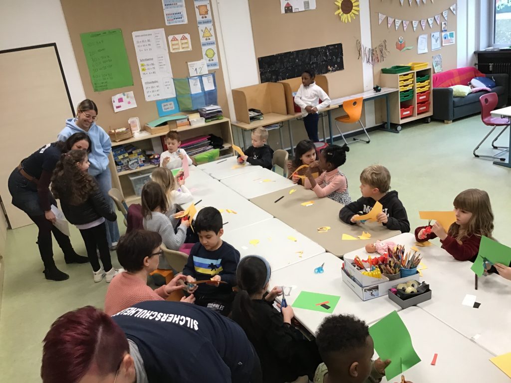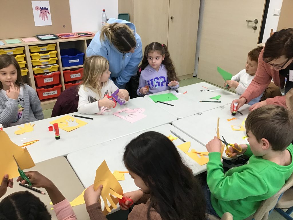 Während die Eltern die Anmeldungen erledigten, schnupperten unsere neuen Schulanfänger schon etwas „Schulluft“ und bastelten ganz mutig ohne Mama und Papa bunte Tiere in unserem Bastelzimmer.