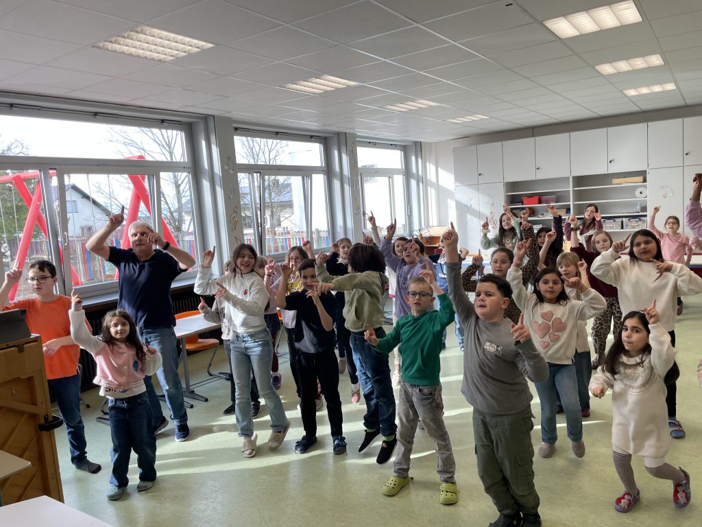 Gerhard Gellner probt bereits fleißig mit dem Schulchor. Sowohl die Lieder als auch die Choreografien sind nicht ganz einfach. Doch alle sind hochmotiviert und freuen sich riesig auf dieses besondere Erlebnis.